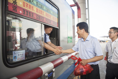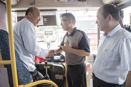 7月30日,李云鴻一行首先來到公共自行車服務網點,看望慰問正在網點運維的工作人員,詢問一線員工工作情況,叮囑他們要注意身體。隨后來到嘉興火車站公交樞紐站,與公交駕駛員和現場工作人員親切握手,詢問了他們的身體狀況和工作情況,對他們在高溫天氣下堅守崗位保障市民出行表示感謝。在汽車北站,李云鴻一行先后在售票大廳、安檢處、檢票處、車輛門檢處,與工作人員一一握手,并送上慰問品,希望他們一如既往堅守崗位,把好安全關,為企業的發展作出更大的貢獻。