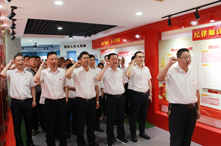 大家首先觀看了《鐵窗相伴的日子》《最后的迷失》兩部法制警示紀(jì)錄片。隨后,大家跟著講解員進入法紀(jì)教育展廳,參觀了“一著不慎 滿盤皆輸”“紀(jì)律如山 規(guī)行矩步”“從嚴(yán)治黨 永不停歇”三個主題展區(qū),并仔細(xì)閱讀了“信念動搖入岐途”“貪欲膨脹成碩鼠”“交友不慎釀苦果”“道德滑坡墜深淵”四個方面的反腐案例。最后,全體黨員一起重溫入黨宣誓。