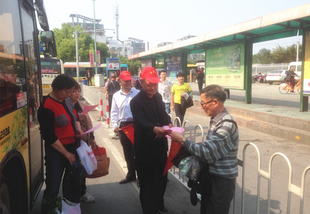 活動現場,戴著小紅帽的公交黨員志愿者們分成5個小組,在中港城、汽車客運中心、火車站、汽車北站、高鐵南站分別開展活動,向駕駛員發放“安全出行、文明行車、禮讓斑馬線”活動倡議書,倡導廣大駕駛員爭做“文明交通”的宣傳者、行動者、垂范者和推動者,爭做文明有禮的嘉興人,為杭州G20峰會護航。同時,志愿者們還積極引導乘客有序乘車,倡導文明出行。