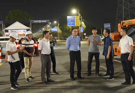 29日晚,洪湖鵬副市長先行赴南湖收費站查看首次亮燈效果,并聽取項目進展匯報。