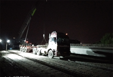 5月24日22時,隨著兩臺大力水手將80噸重的預制箱梁穩(wěn)穩(wěn)落在0#臺及1#墩橡膠支座上,標志著灣北二期浙江段汾湖大橋全橋順利合龍。