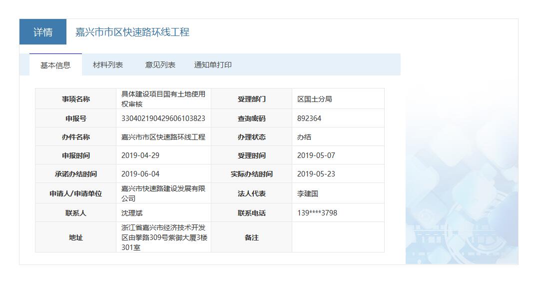 嘉興市市區快速路環線工程國有土地使用權審核服務信息
