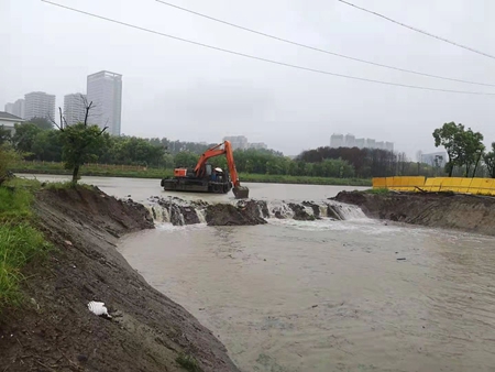 據(jù)了解,按原設計方案,新建虹海橋跨海鹽塘河道采用分幅圍堰交替施工方式進行,施工工期須20個月,這對快速路整體工程進度產(chǎn)生較大影響。為滿足工期要求,同時確保工程實施過程中不降低城防排澇標準,快速路公司聯(lián)合水利局、港航局等部門,多次組織設計、施工、監(jiān)理等單位進行論證和研討,最終確定了海鹽塘臨時導流方案。即采用海鹽塘河道全截斷式圍堰施工,在虹海橋圍堰以北海鹽塘東側臨時3號箱涵位置進行開挖導流,使海鹽塘與植物園內(nèi)自然生態(tài)河道連通,以滿足海鹽塘樞紐在汛期排澇所需過水斷面,此舉將虹海橋施工周期縮短約至14個月。